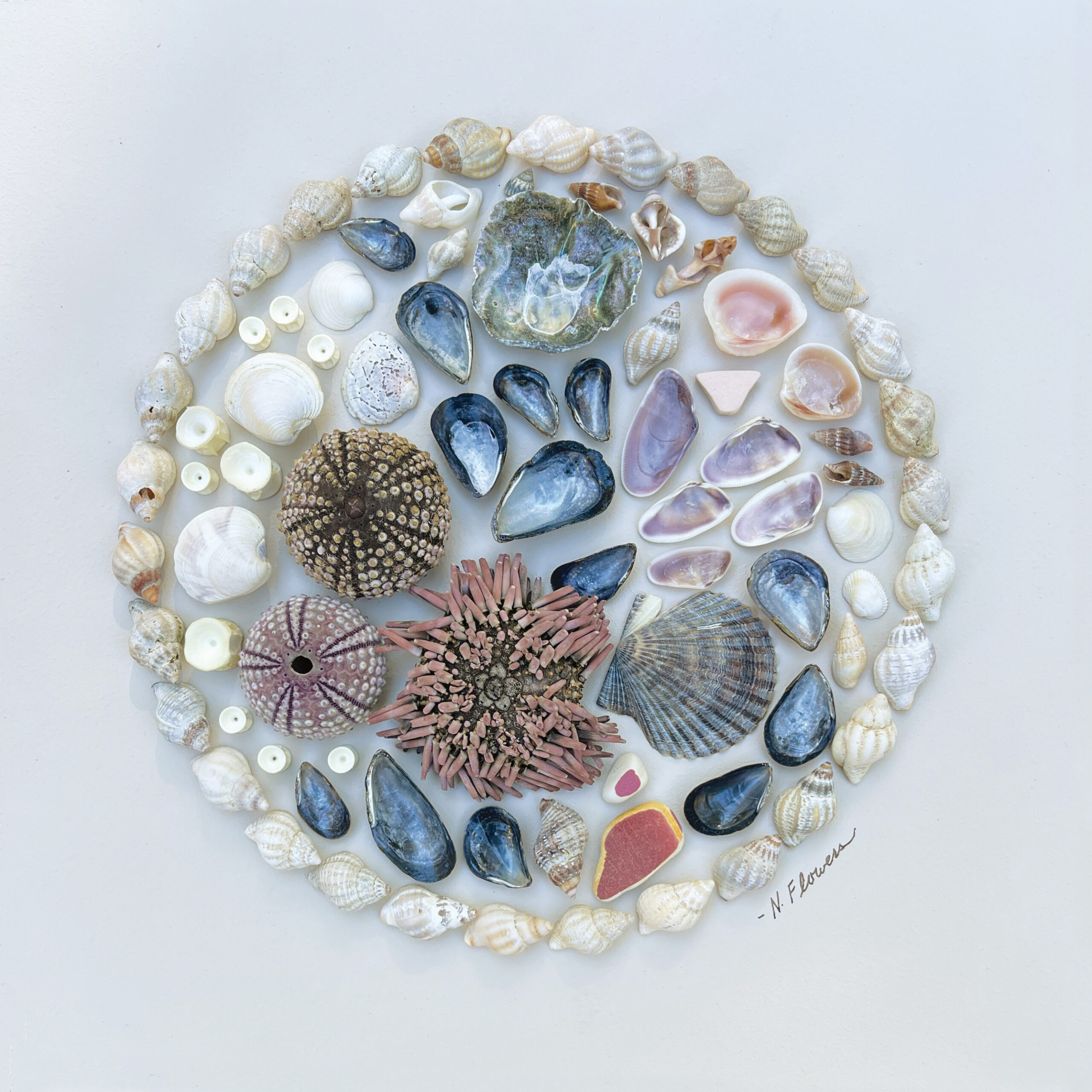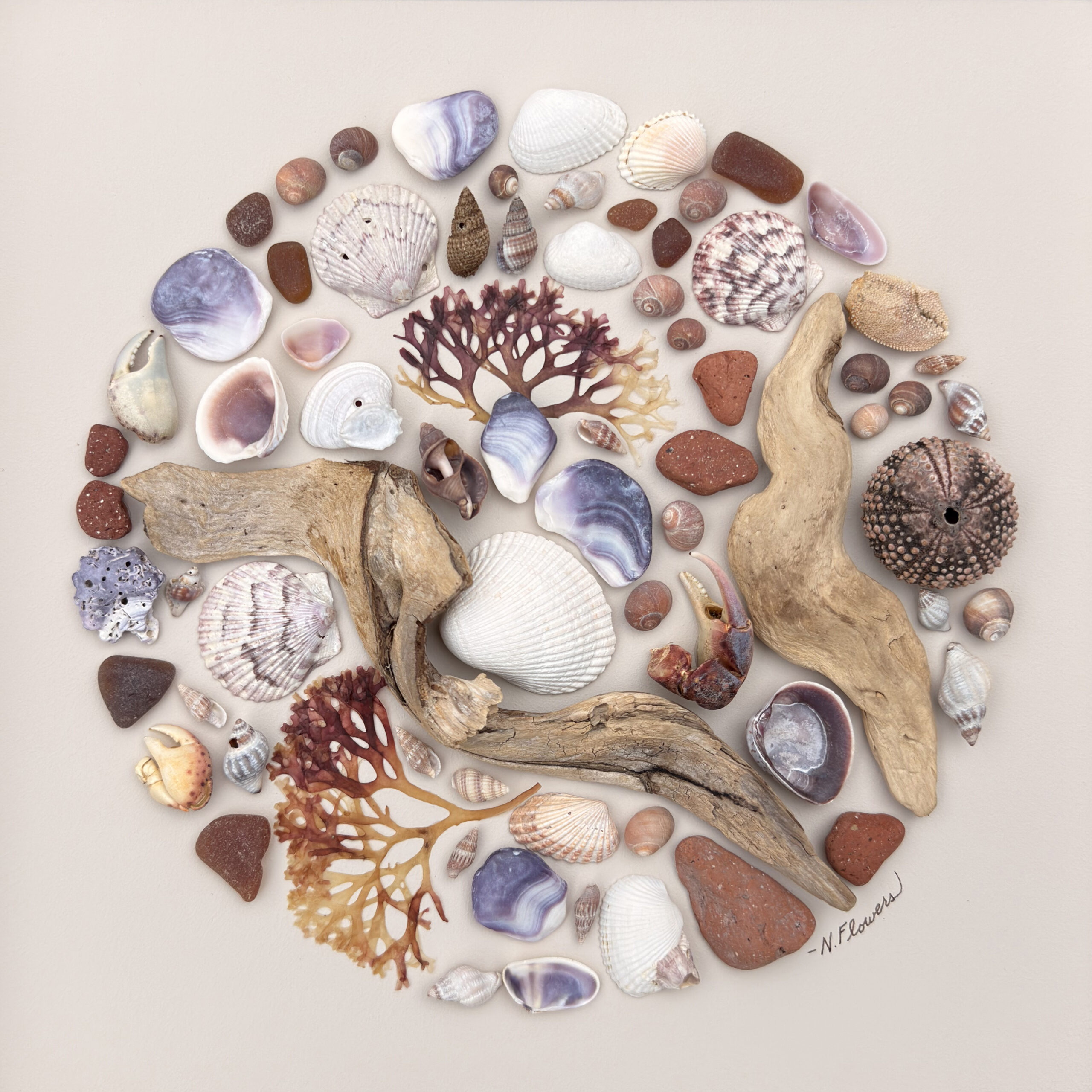 Scallop Shell Seaweed Storybooks Three-dimensional Approximately 4 x 4 inches | Pressed seaweed on watercolor paper bound with raw silk ribbon