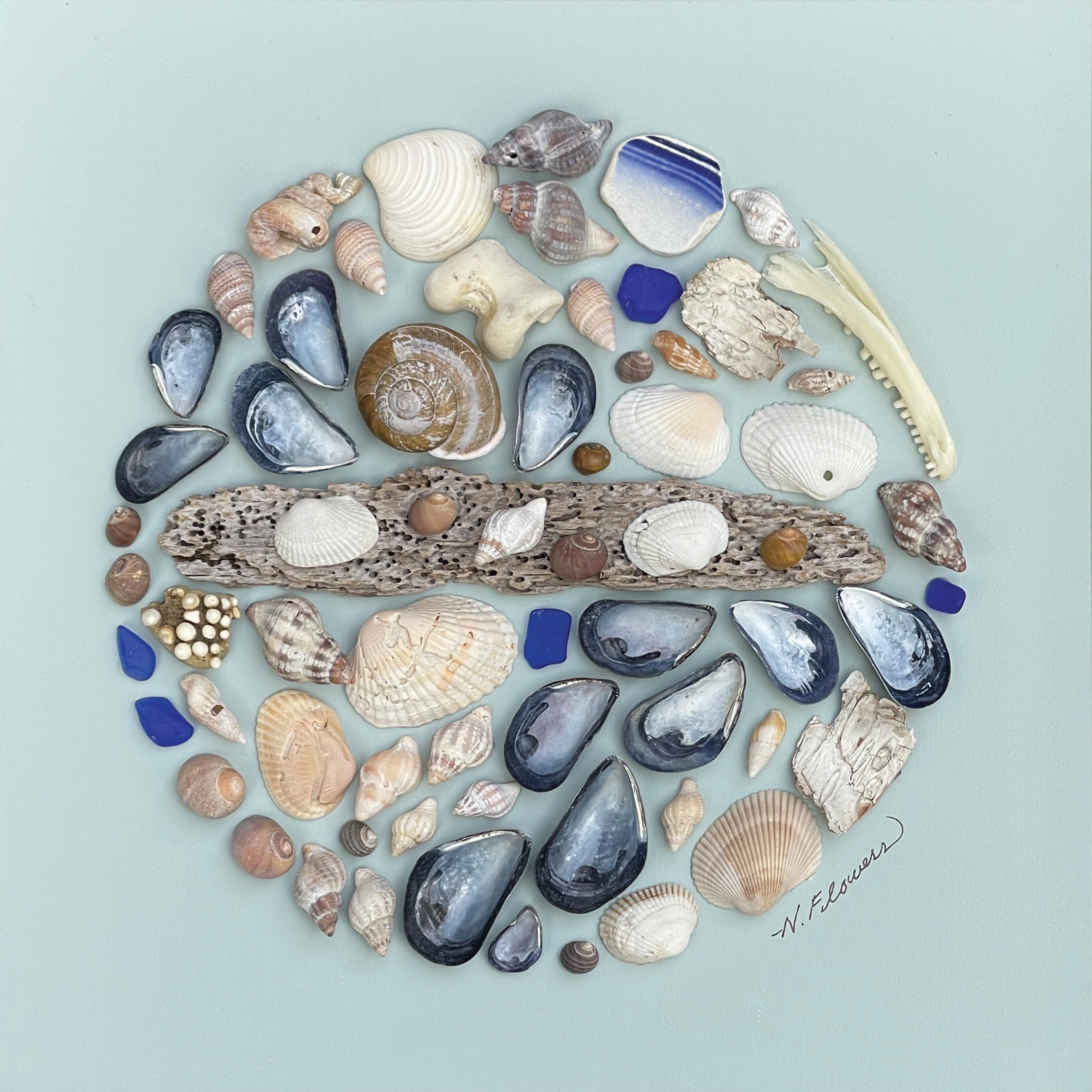 Three Sides to the Sea Organic 7 x 7 inches | Series of three, individually framed | Mixed media on painted hardboard