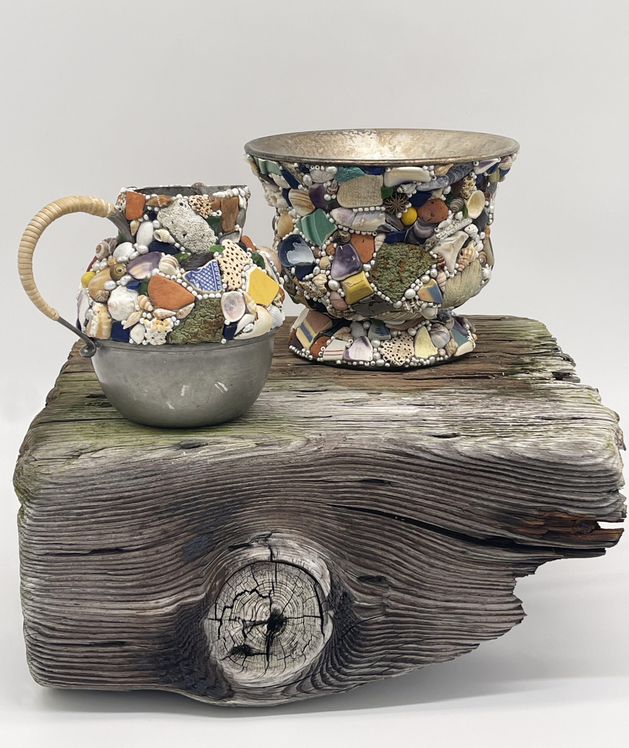6 x 6 x 6 inches | Metal vessel, epoxy, and shoreline findings